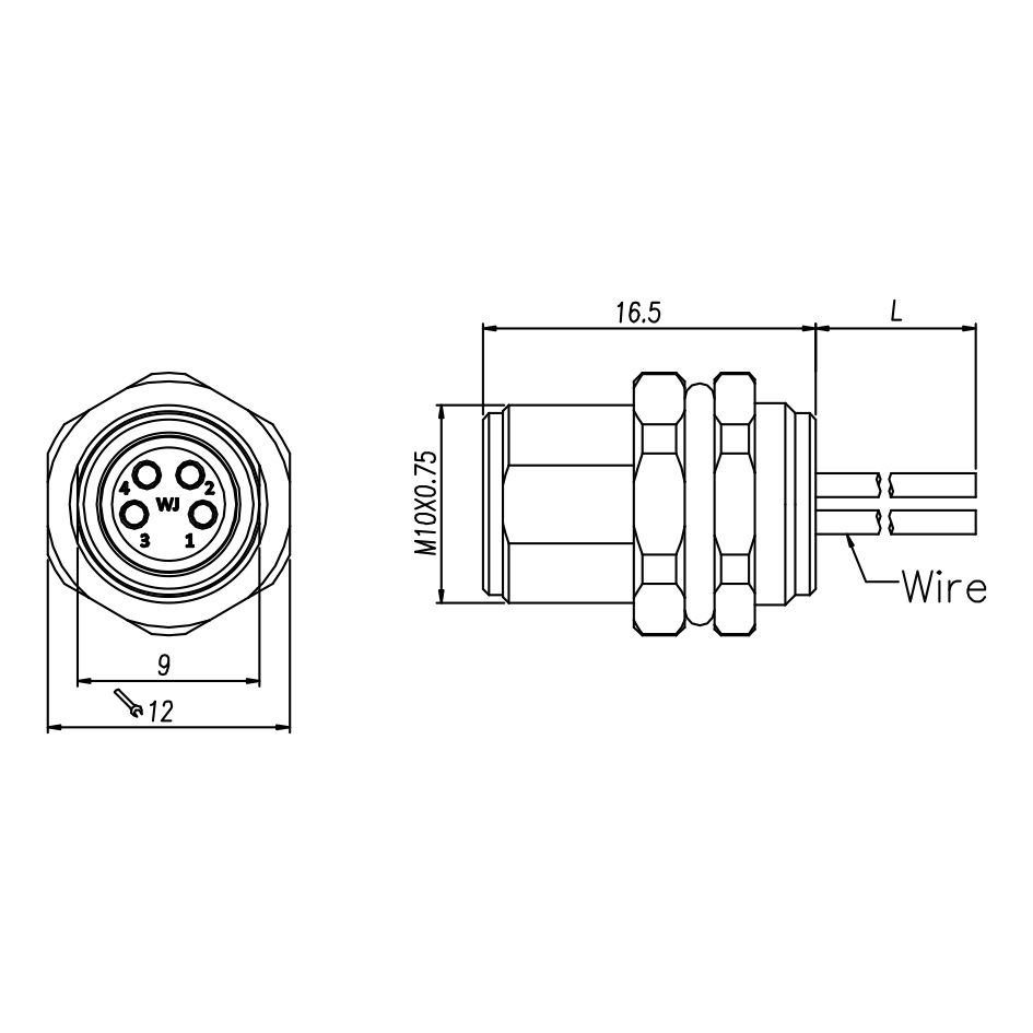 M8 母头面板式,焊接型,前锁安装,焊电子线